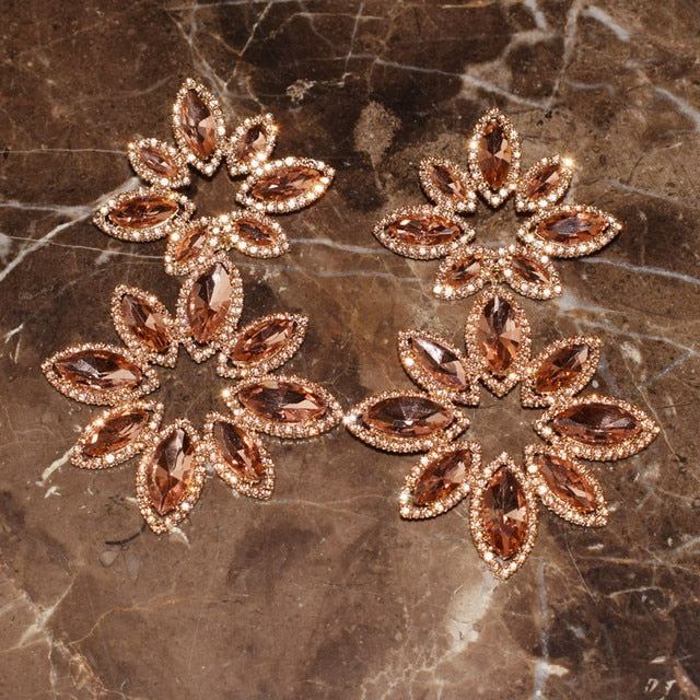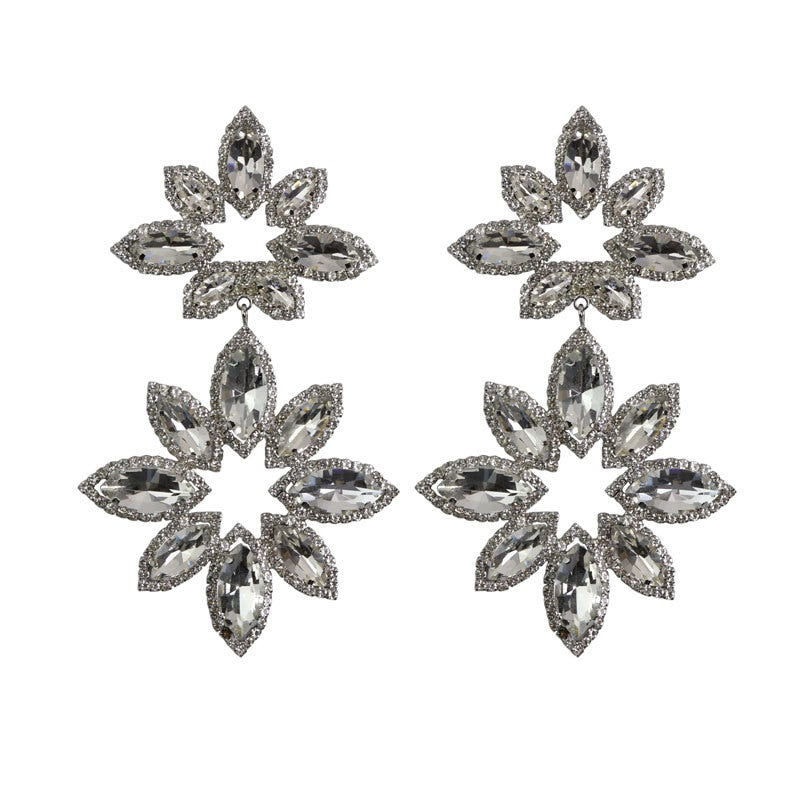 Ohrstecker mit glitzernden, blütenförmigen Ohrhängern aus Strasssteinen.