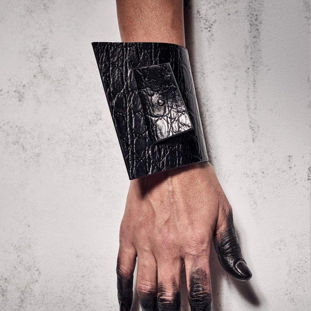 Handgemachtes schimmerndes schwarzes Leder Punk Armband.