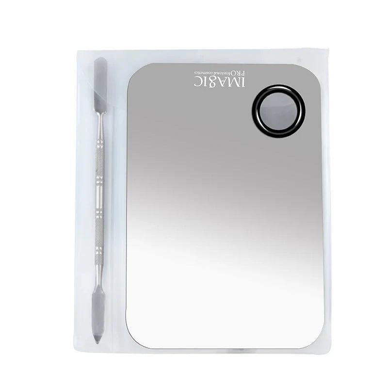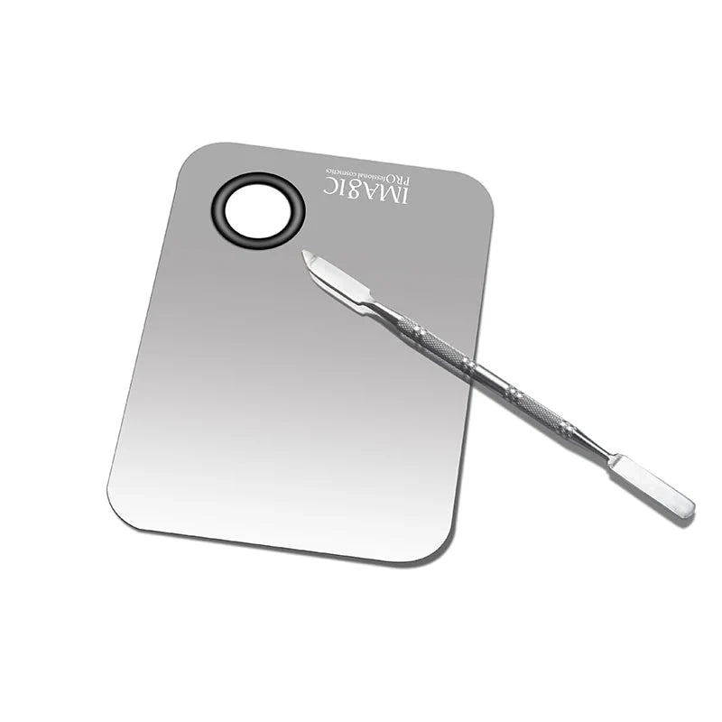Professionelle Mischpalette aus Edelstahl, speziell für Körperbemalung. Die rechteckige Palette ist robust und ideal zum präzisen Mischen und Vorbereiten von Pigmenten. Jedes Set enthält einen passenden Rührstab für gleichmäßiges Verblenden der Farben. Unverzichtbares Equipment für Make-up-Artists und Künstler, die zuverlässige, leicht zu reinigende Werkzeuge suchen, die auch bei häufigem Gebrauch die Farbbrillanz während des gesamten kreativen Prozesses bewahren.