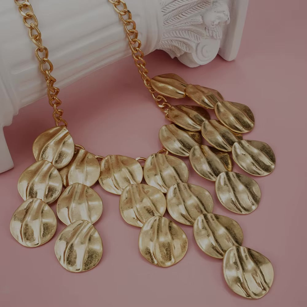 Diese geometrische goldene Halskette verleiht jedem Outfit einen Hauch von Stil. Vervollständigen Sie Ihren Look mit diesem einzigartigen Schmuckstück, das garantiert alle Blicke auf sich zieht und ein echtes Statement setzt.