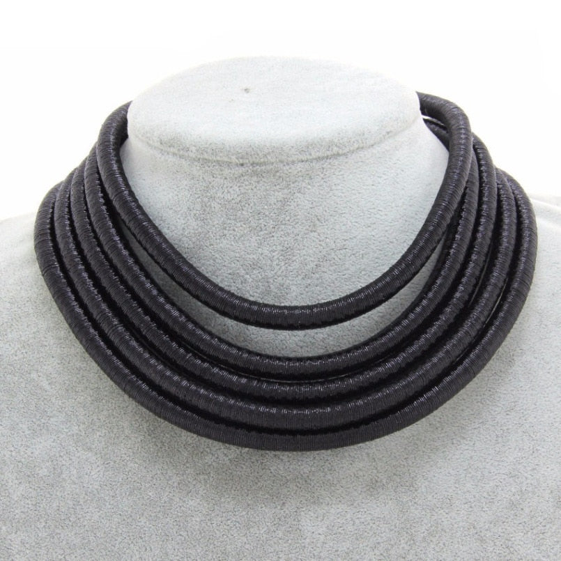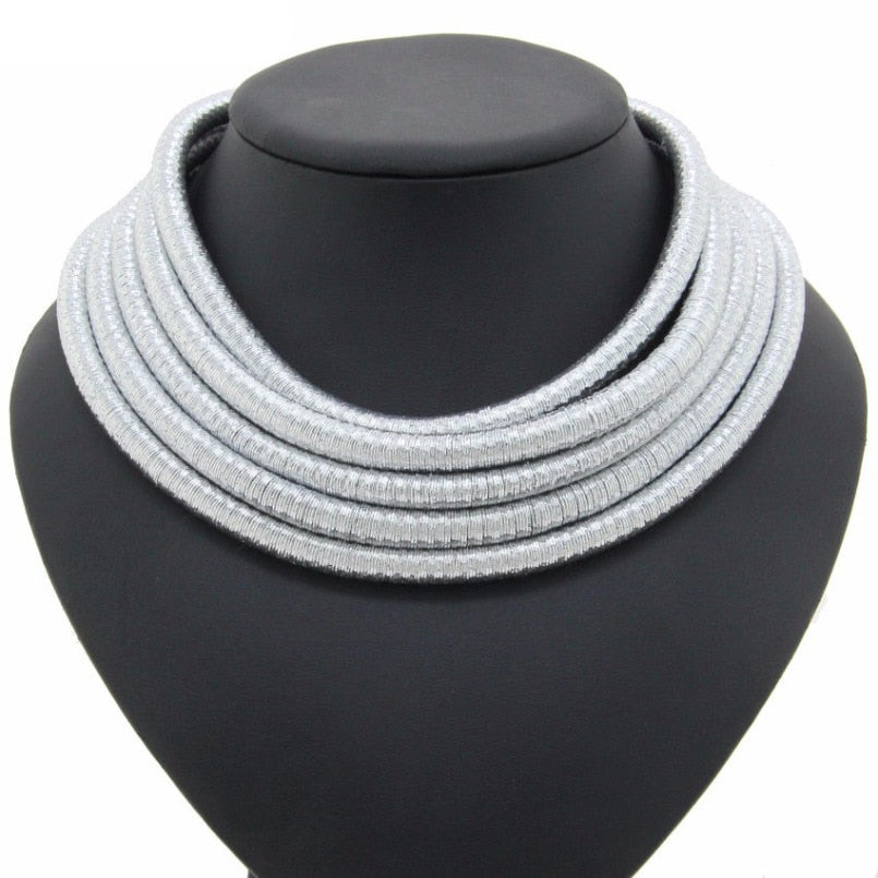 Mehrschichtiges metallisches Halsband mit Magnetknopf.