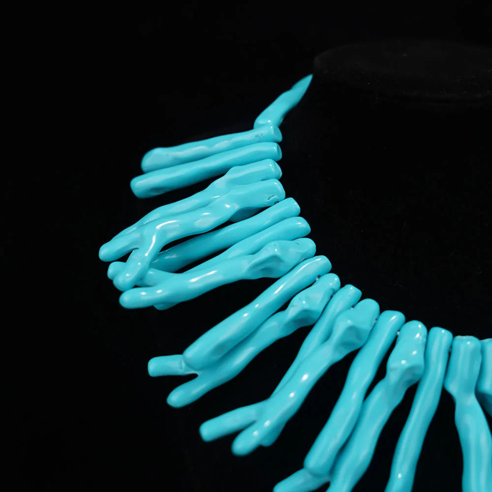 Verlieben Sie sich in diese wunderschöne blaue Harz-Halskette. Ein auffälliges Schmuckstück mit einem eleganten Boho-Stil. Das unregelmäßige Design verleiht ihr eine einzigartige Ausstrahlung und besonderen Charme.