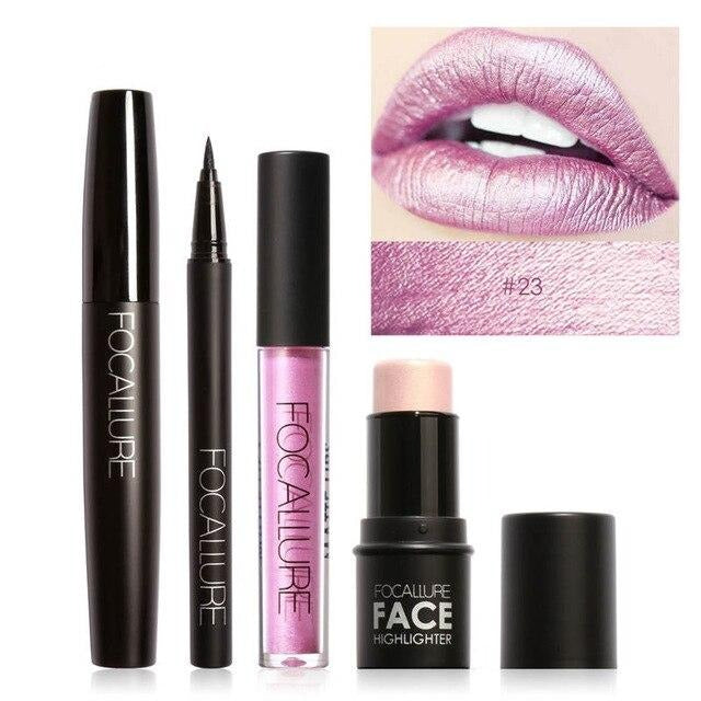 Schwarze Wimperntusche + Textmarker + Eyeliner + Lipgloss.