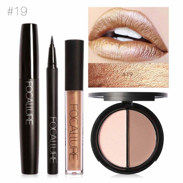 Schwarze Wimperntusche + Lipgloss + Eyeliner + Puder Marker / Bronze.