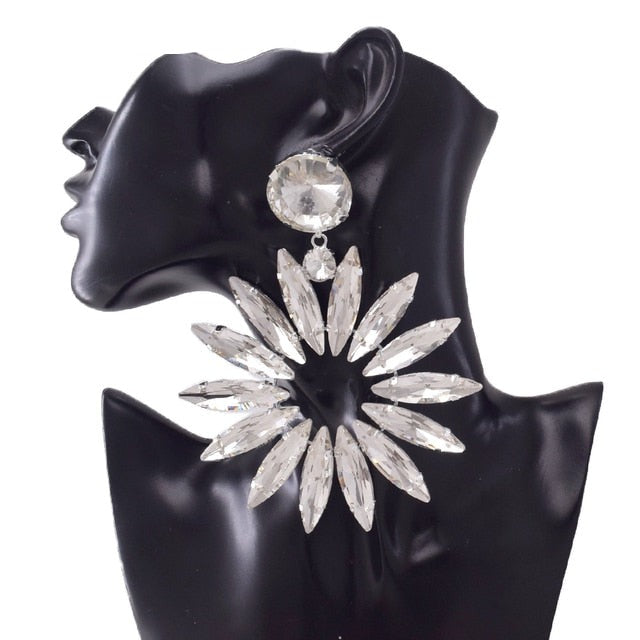 Riesige Ohrclips mit einem blumenförmigen Anhänger.