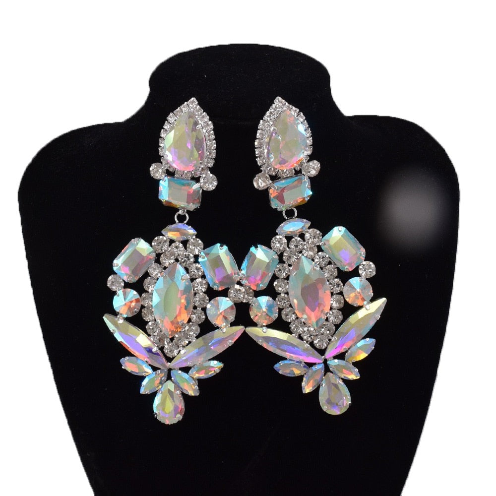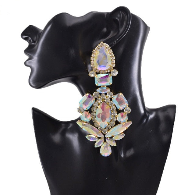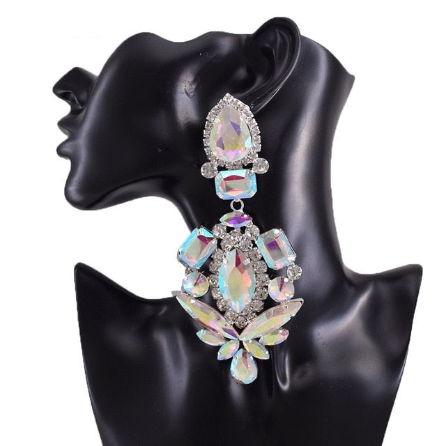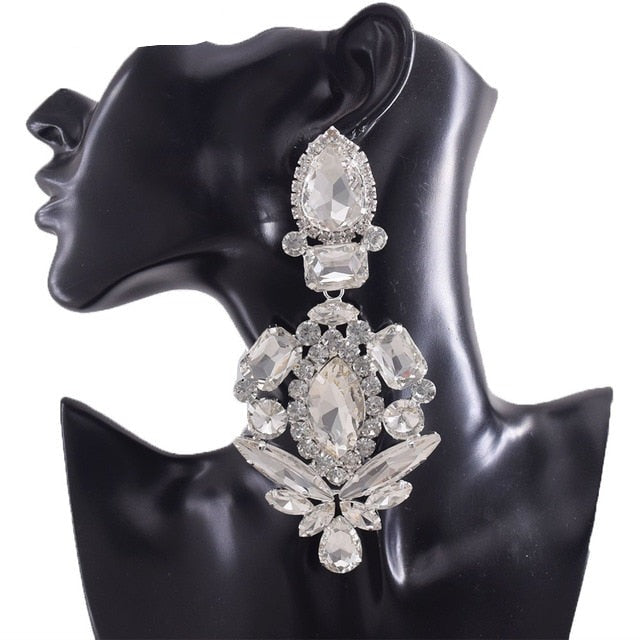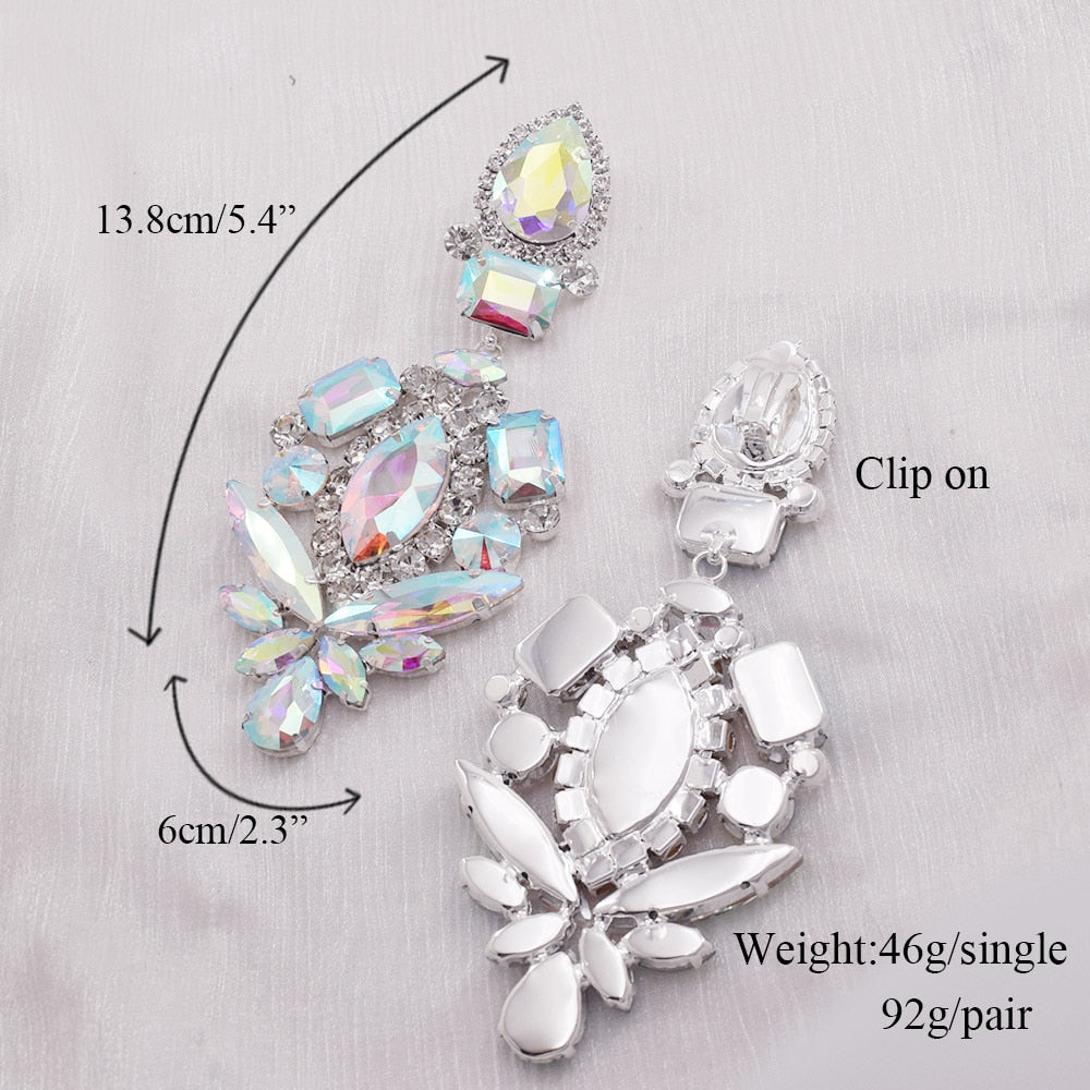 Riesige Ohrclips mit einem Anhänger in Form von Wassertropfen.