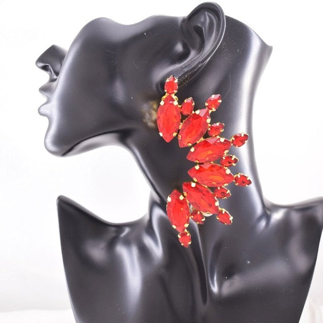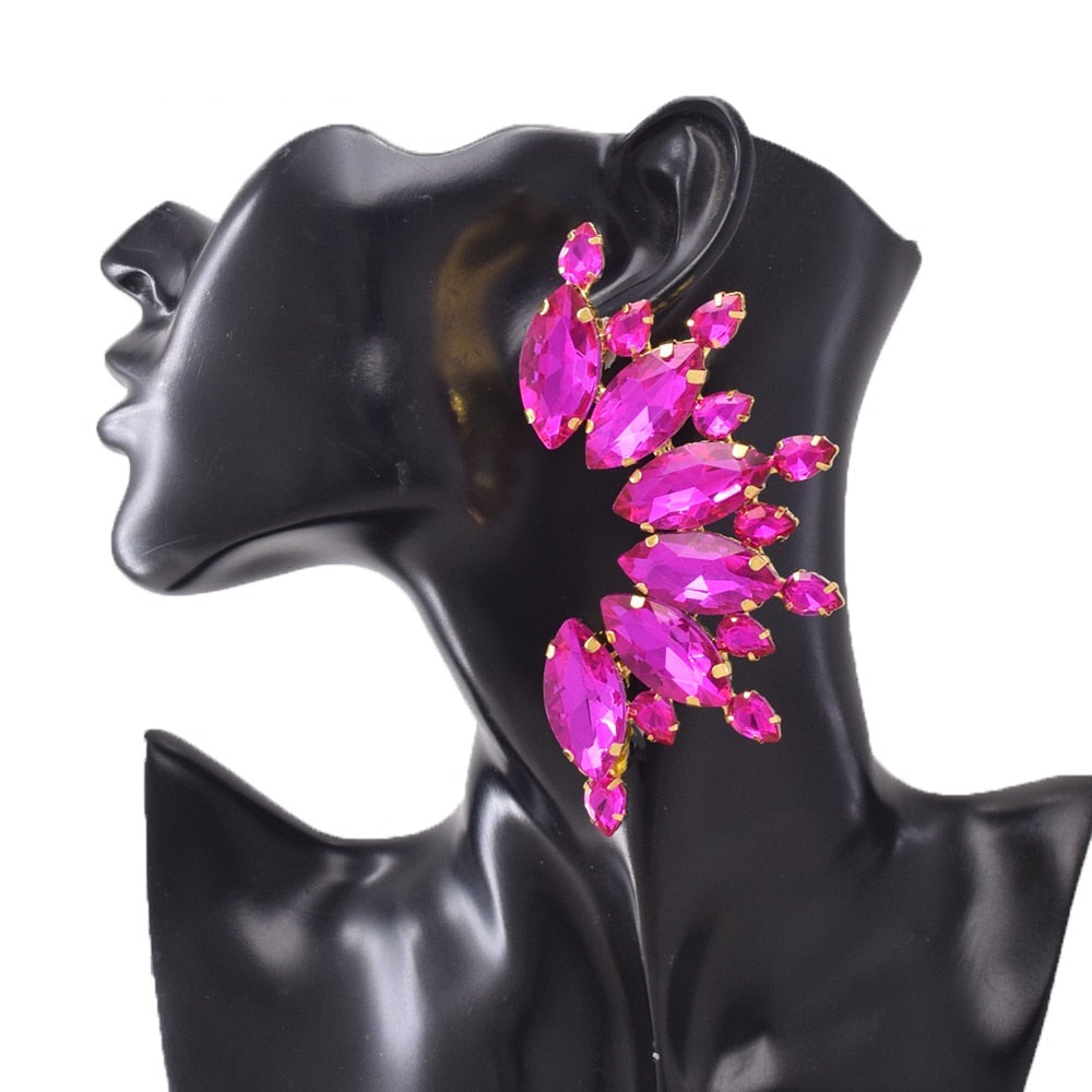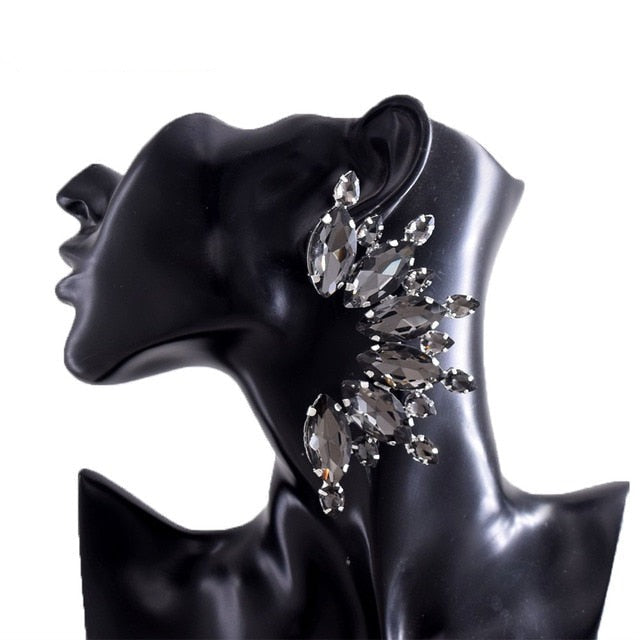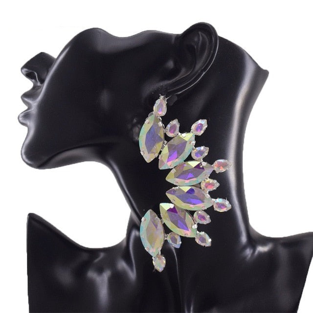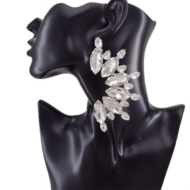 Riesige Ohrclips mit halbmondförmigem Anhänger aus Wassertropfen.