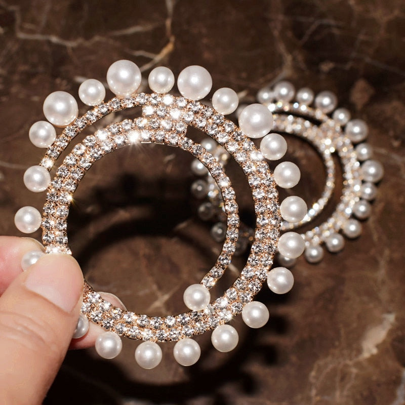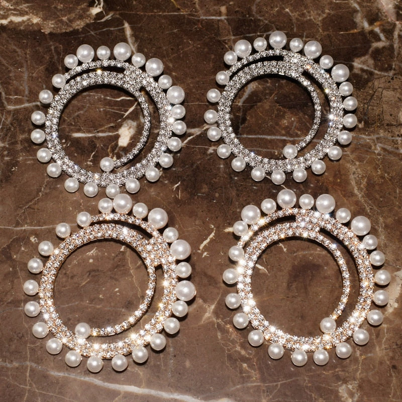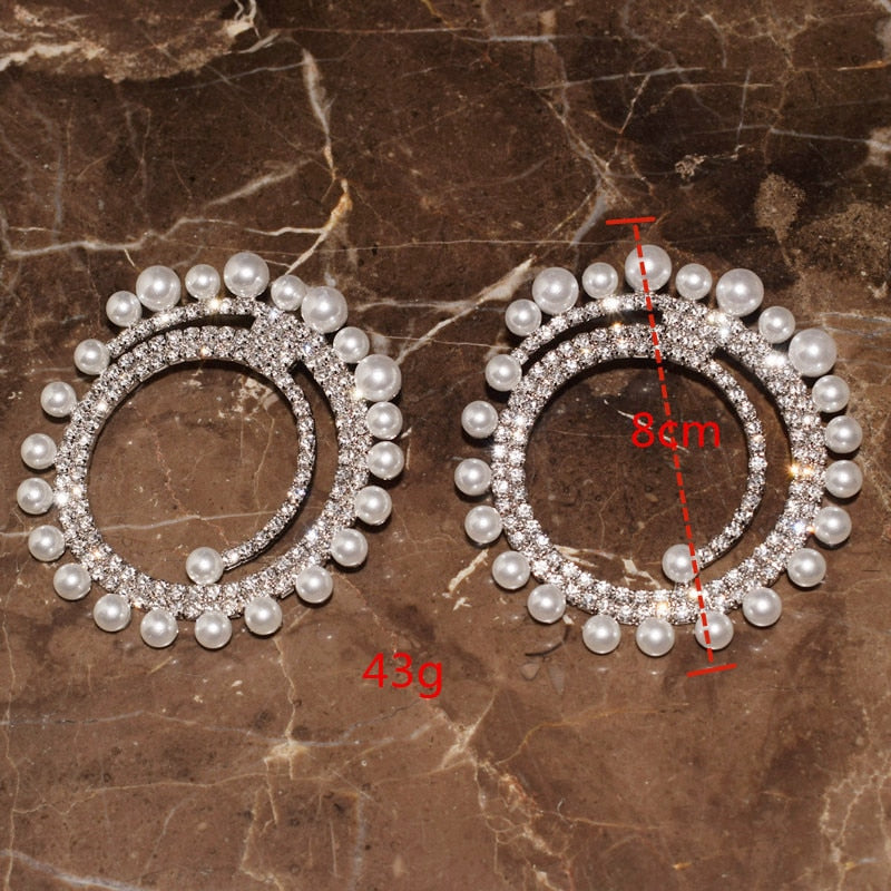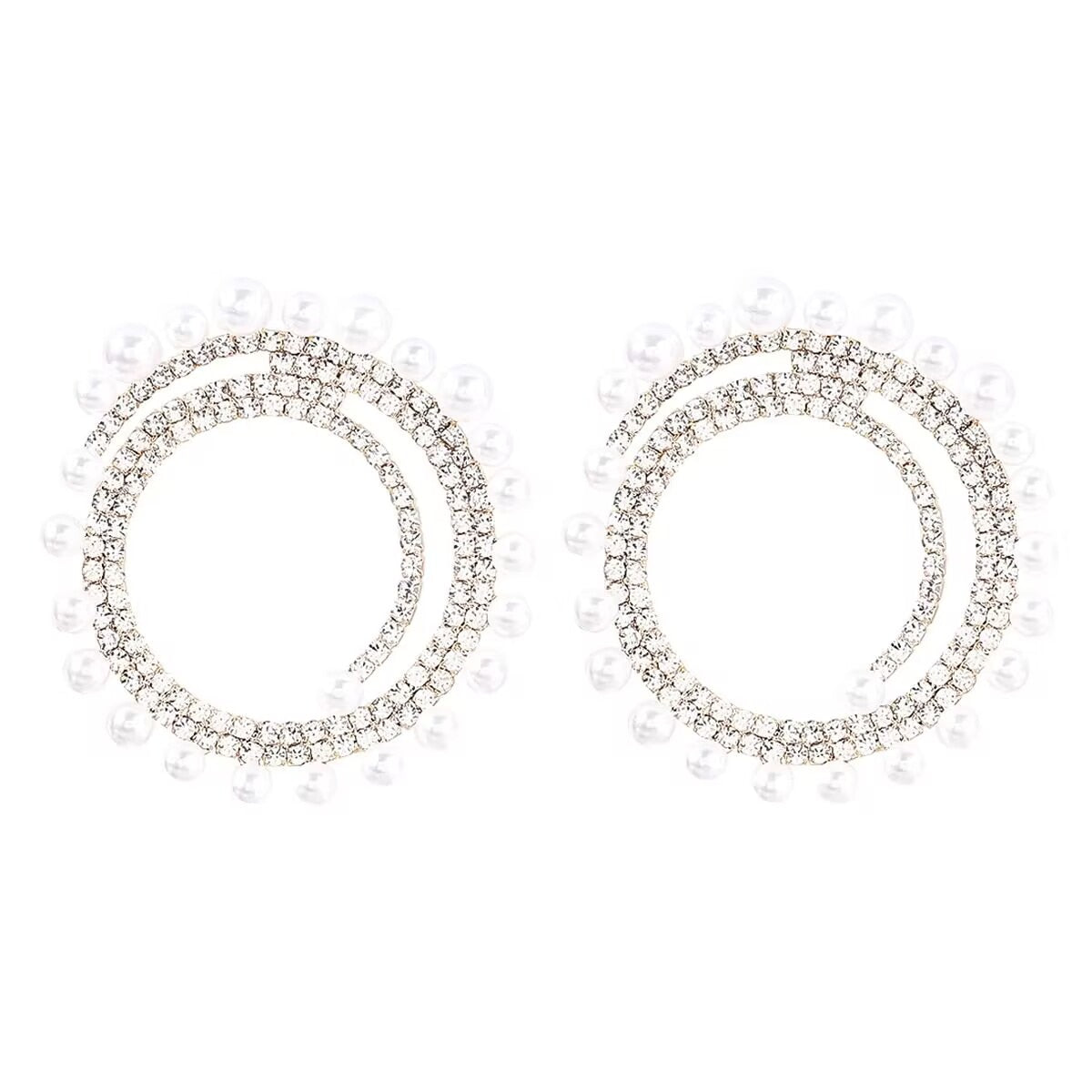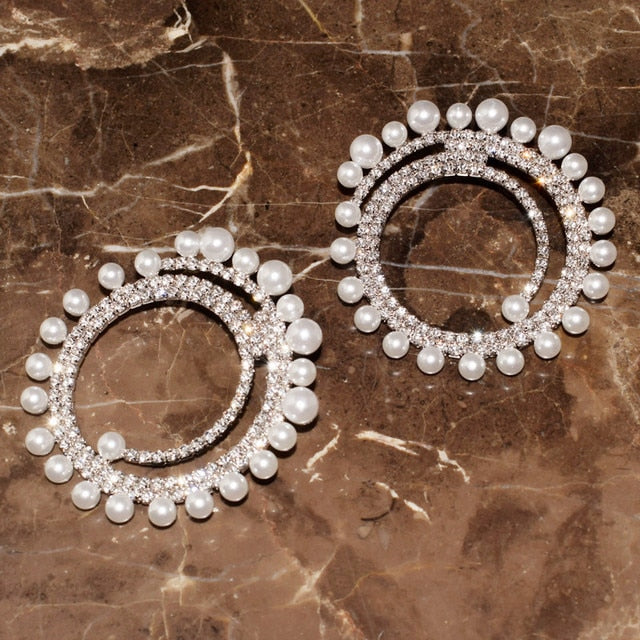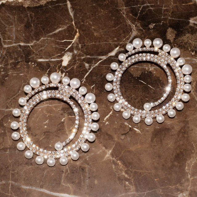 Ohrstecker mit großen Perlen- und Strass-Anhängern.