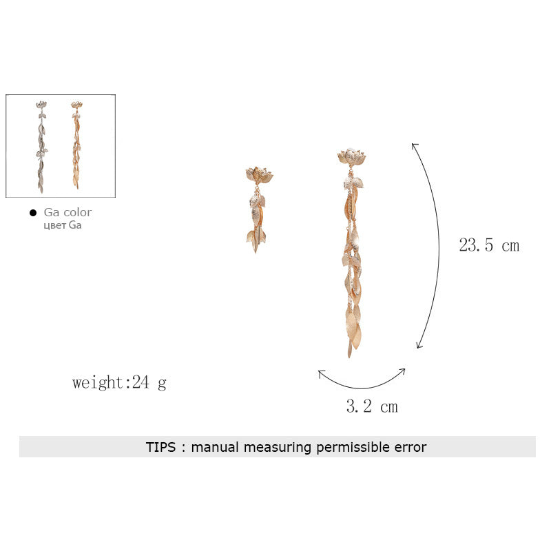 Handgemachte Gold Farbe Aussage lange Blatt Quaste Ohrstecker.