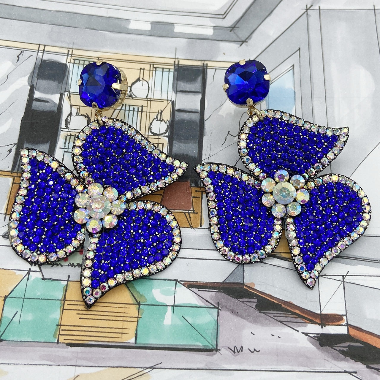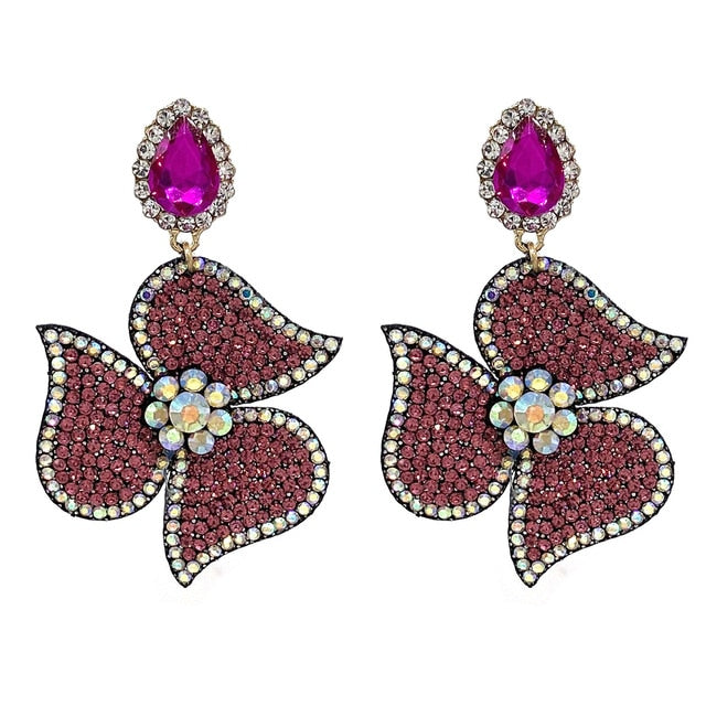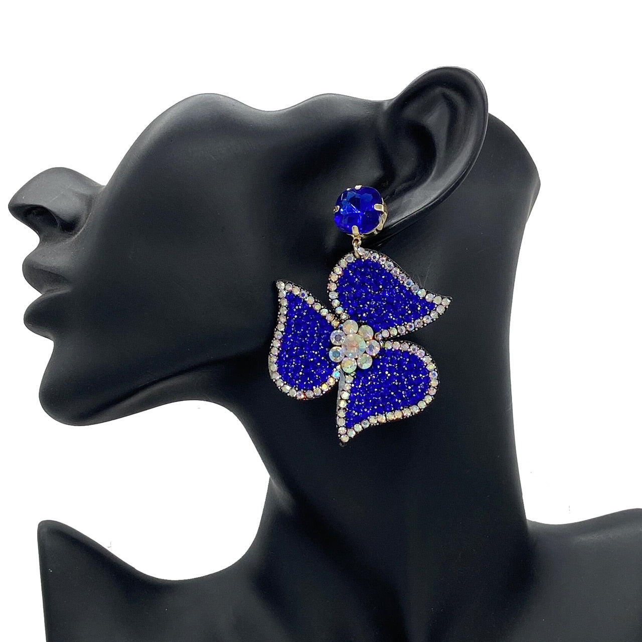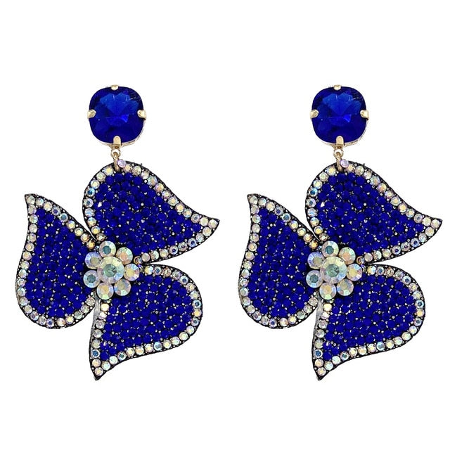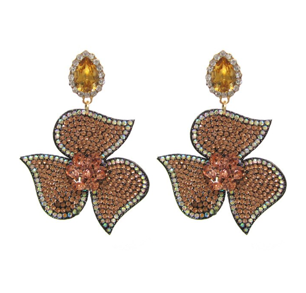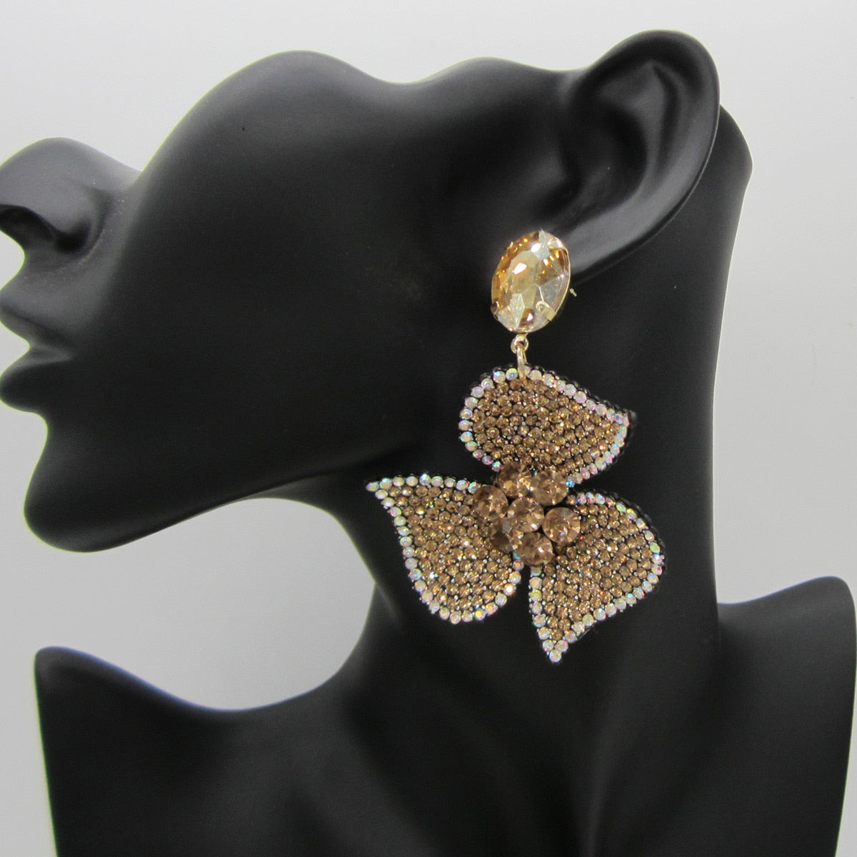 Lochohrringe im böhmischen Stil, mit Blumenform und Strasssteinen.